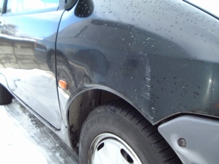 Fバンパー、左Fフェンダー、左ドアミラー、左ドア、左Rフェンダー、左アンダーフレーム、傷&へこみ入ったス〜。